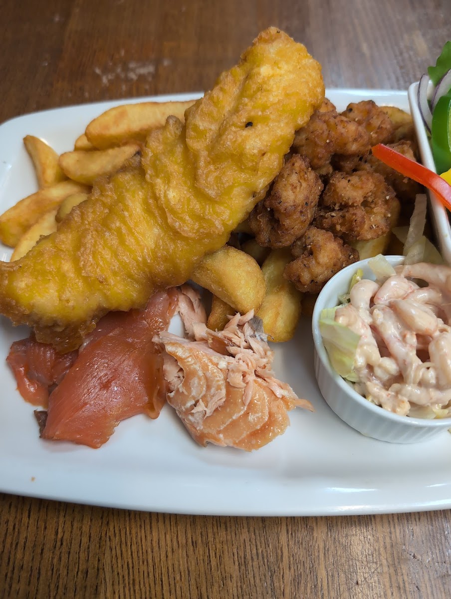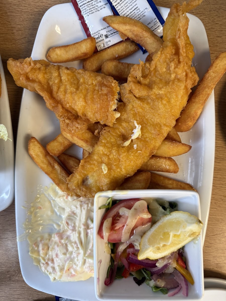 Huge portions (fish and chips enough for 2 people). Wonderful kind staff. Fish and chips really good especially considering the reasonable price.